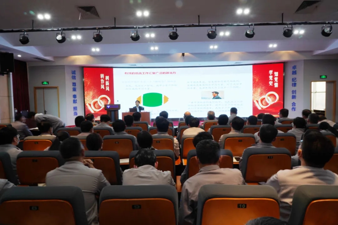 传承红色百年史,初心如磐向未来。4月29日下午,天润工业技术股份有限公司党史学习教育动员大会在公司七楼阶梯教室举行,全体中层以上干部参加会议。会议特邀文登区委党校高级讲师隋建光作“中国共产党革命成功的历史经验”主题党史教育。党委副书记刘红福组织传达学习习近平《在党史学习教育动员大会上的讲话》重要精神。