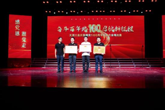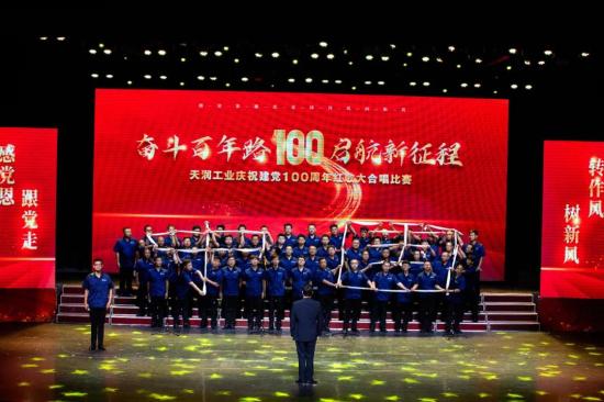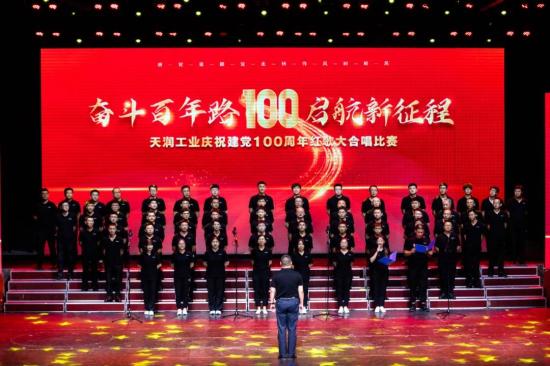 比赛在《保卫黄河》激昂的旋律中拉开了序幕。演出现场,《走向复兴》、《咱们工人有力量》、《歌唱祖国》、《没有共产党就没有新中国》、《唱支山歌给党听》等20支曲目轮番上演,带着观众跨越历史时空,重温激情燃烧的岁月,全方位展现了中国共产党100年来通过艰苦卓绝的不懈奋斗、实现中国沧桑巨变的恢弘历史画卷。各支代表队们用嘹亮的歌声唱出了天润儿女对于红色精神发扬传承的坚定信念,唱出了天润儿女对中国共产党的衷心拥护。