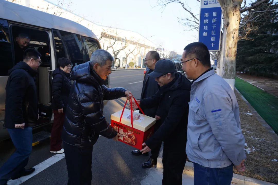 1月29日,大年初一一大早,天润工业技术股份有限公司总经理徐承飞带队深入一线,亲切慰问春节坚守岗位的员工,为他们送去节日的祝福和诚挚的关怀,常务副总经理夏丽君及其他经营层参加慰问。