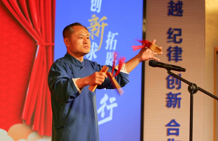 随后,主题歌舞、乐器演奏、快板表演等节目陆续上演,既有歌舞剧院专业团队的倾情演绎,也有威海市总工会原创的精彩作品;既展现了现代歌舞的动感时尚,也有传统器乐的韵味悠长……其中,威海市总工会原创快板《工会赞歌新时代》,通过节奏欢快明朗、充满希望的曲词,奏出我市一线劳动者多年如一日的坚守和无怨无悔的付出;歌曲《领航新时代》,在激昂的旋律中,聆听奋斗者的坚韧与拼搏,唱响新时代的心中信仰与荣光。乐器《赤韵合鸣》,或婉转悠扬或雄浑壮阔,颂扬国家繁荣与民族复兴的气势磅礴。一个个精彩纷呈的节目,赢得现场观众的阵阵掌声,为职工群众送上了精美的“文化大餐”和“视听盛宴”。在汇演活动尾声,会场全体人员共同起立齐唱《歌唱祖国》,深情讴歌家国情怀,展现了中华民族不屈的精神力量,将现场气氛推向最高潮。